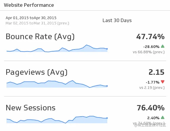 仪表通常只比较一个刻度上的两个值:它们比较当前值和目标值,通常以绿色或红色指示进度是好是坏。