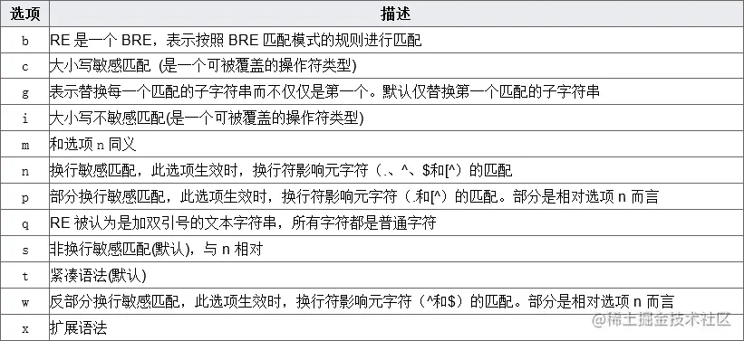 表2 GaussDB(DWS)正则表达式函数的flags参数的选项说明