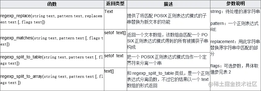 GaussDB(DWS)提供了支持POSIX正则表达式的函数,如表1所示。