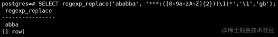 示例****9-1:在BRE匹配模式中(regexp_replace函数的最后一个参数中指定的字母‘b’即表示使用BRE匹配模式),正则表达式中要表示圆括号表达式,需要将圆括号进行转义;同样,表示原子精确次数匹配序列的花括号,也需要进行转义