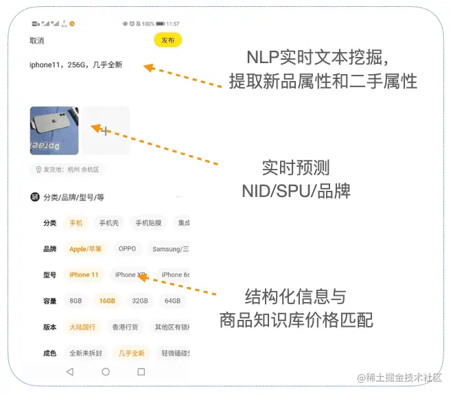 我们采用了淘系的商品标准,采用了SKU/SPU/品牌/类目的商品属性体系。通过新品属性,我们可以知道这件闲鱼商品本身新品的市场行情价是多少。