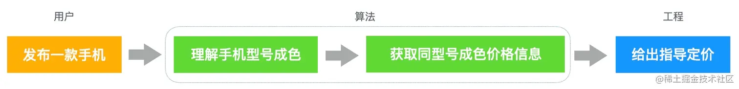 举个例子,我们要给出手机的指导定价,那么首先要建立各种品牌手机的定价标准,然后识别用户上传的商品是什么(比如华为p30手机和相关属性)并依据定价标准,最后给出指导价。