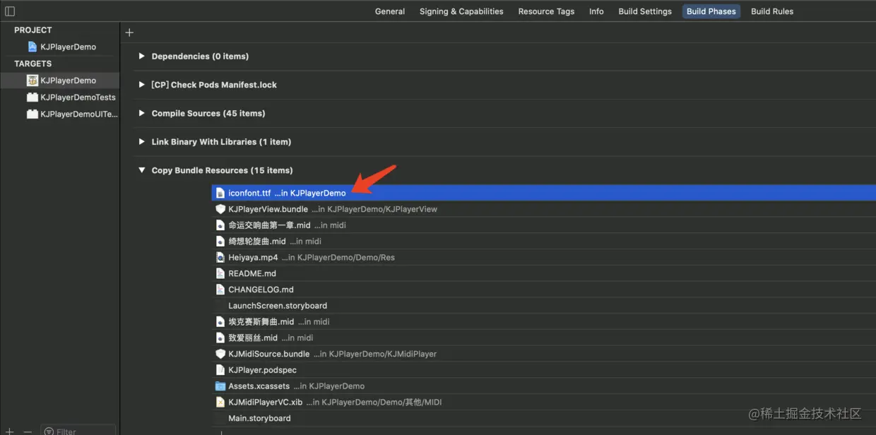 1、将字体库添加在Copy Bundle Resources
