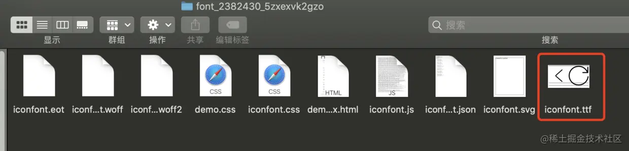 然后下载到本地,可以看到这些文件,其中的ttf文件就是我们需要的字体库
