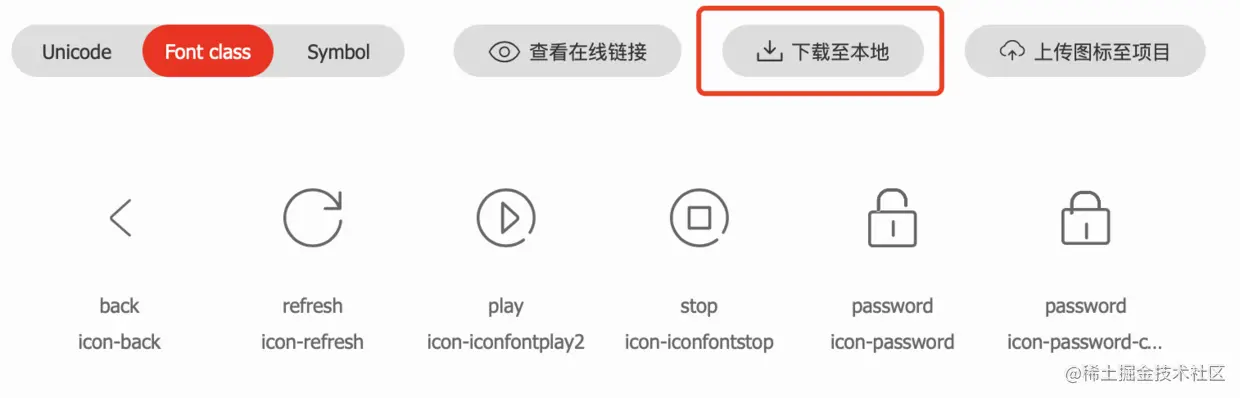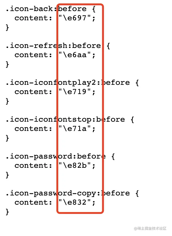 方式一、打开刚刚下载到本地的文件iconfont.css,里面就可以看见对应图标的编码