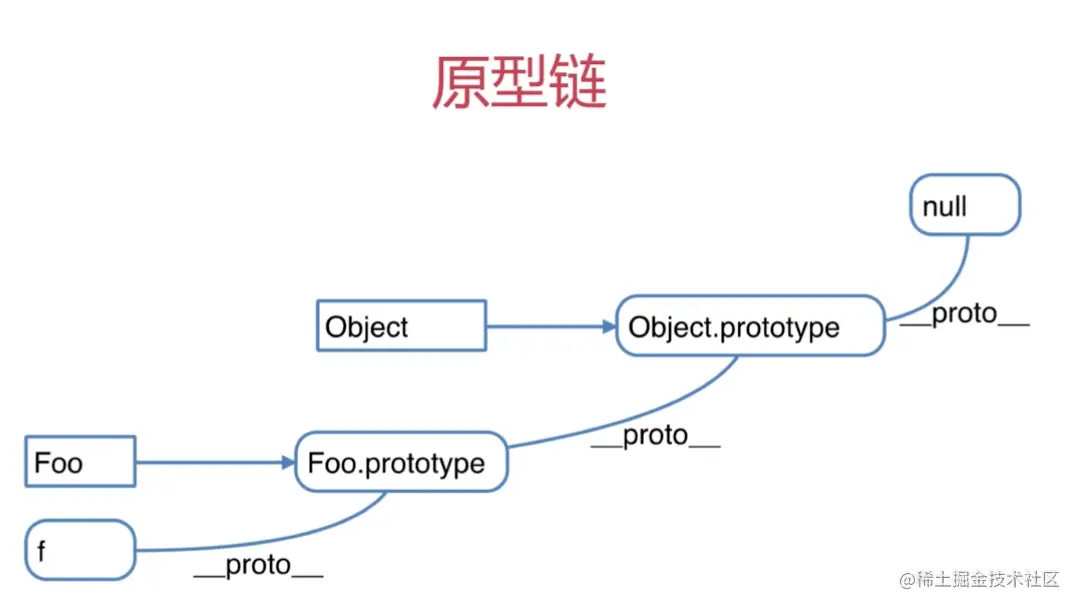 当访问一个对象的某个属性时,会先在这个对象本身属性上查找,如果没有找到,则会去它的__proto__隐式原型上查找,即它的构造函数的prototype,如果还没有找到就会再在构造函数的prototype的__proto__中查找,这样一层一层向上查找就会形成一个链式结构,我们称为原型链。