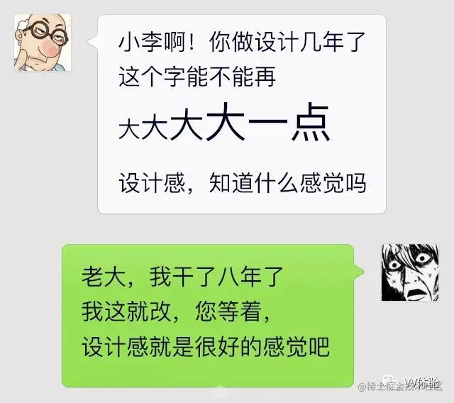产品经理:产品经理最喜欢说的三句话就是这个需求很简单、这个需求很着急、这个需求很重要。这三句话本身就很招人烦。再就是提出具体的设计问题,这块的字能不能再大点、Logo 再变大一点、按钮再大点、反正就是都变大点、空白的地方都填满;颜色能不能再明显点、蓝色是不是科技感更强点、红绿搭配会不会更好点等。