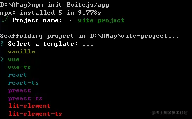 npm init @vitejs/app