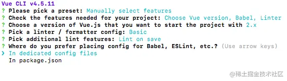 默认还是选择了默认配置babel、linter,其它的根据自己需求选择。
