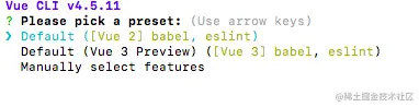 选择Default ([Vue 2] babel, eslint)就可以了。