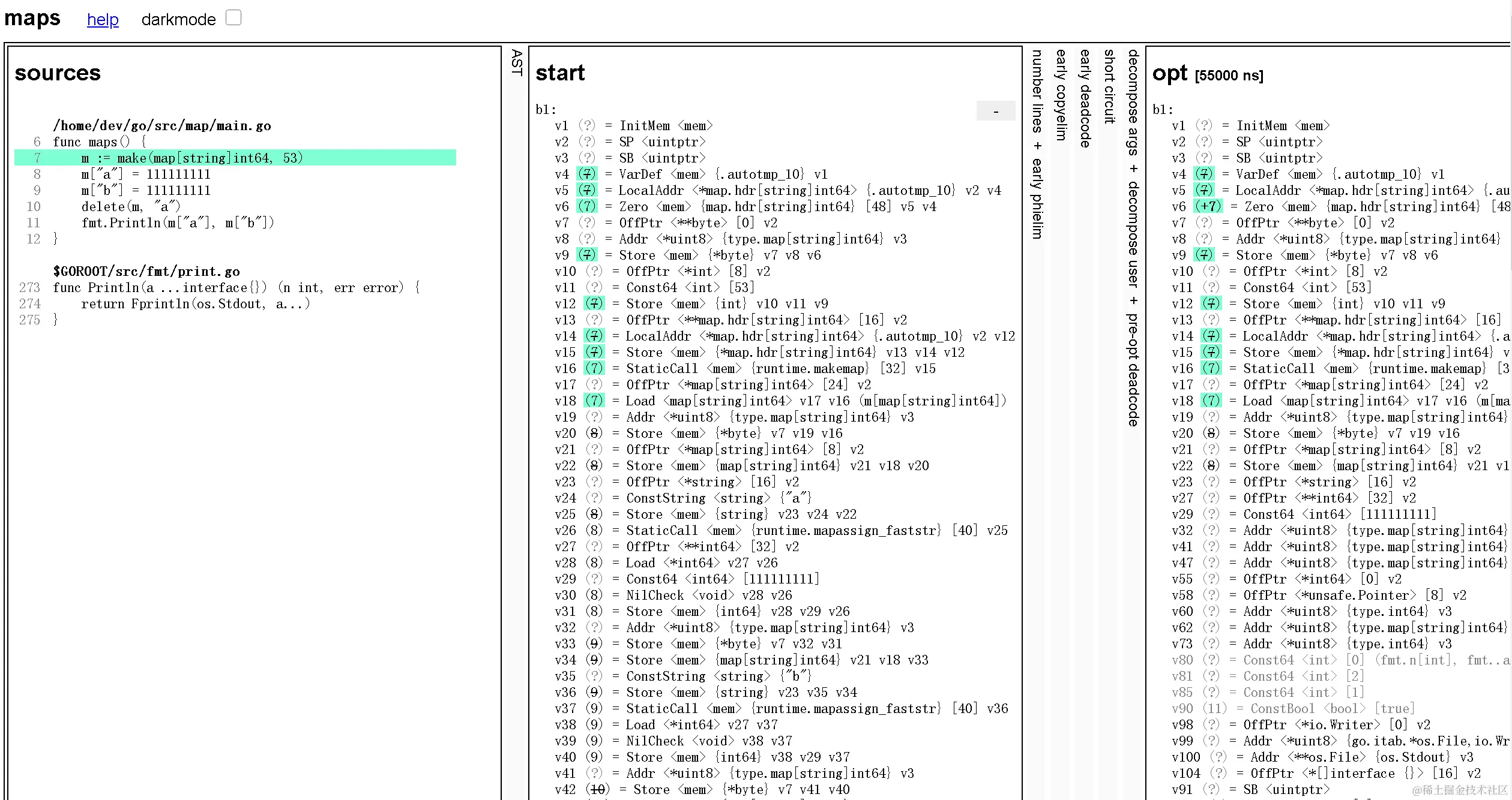 如:GOSSAFUNC=maps go build main.go