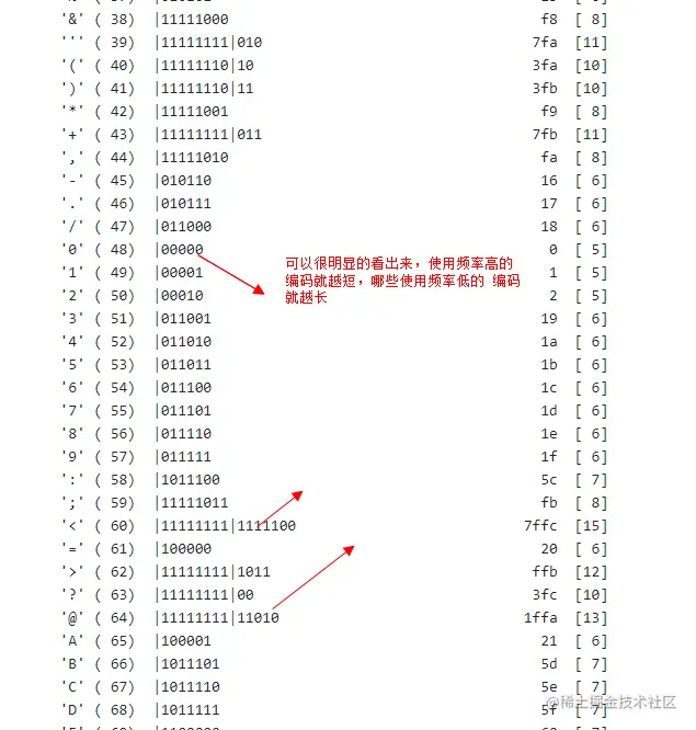 最后我们来看看hpack算法中的核心:哈夫曼编码。哈弗曼编码核心思想就是出现频率较高的用较短的编码,出现频率较低的用较长的编码(HTTP 2协议的前身spdy协议采用的是动态的哈夫曼编码,而HTTP 2协议则选择了静态的哈夫曼编码)。