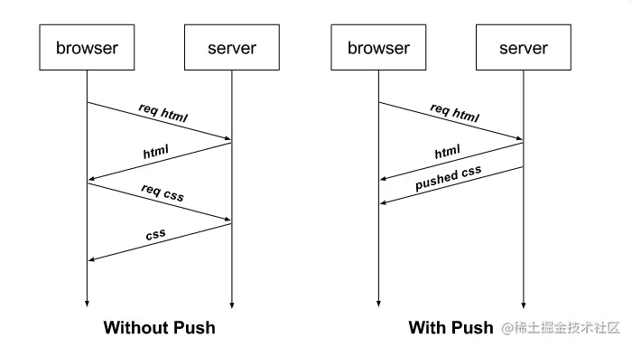 //在收到html请求的时候 同时主动push html中引用的css文件,不需要等待浏览器发起请求