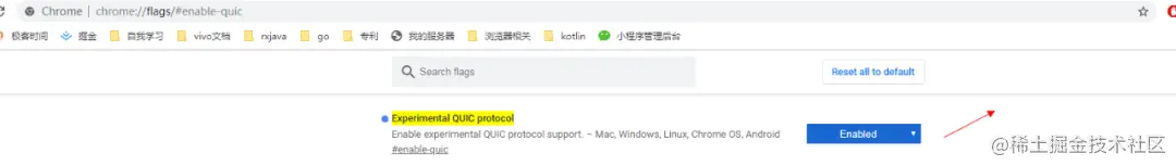 我们打开Chrome中的quic协议开关: