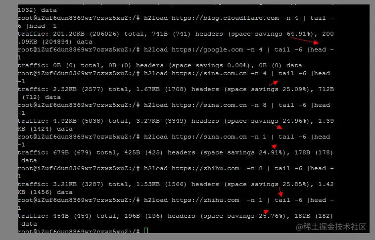 然后可以探测一下一些已经开启 HTTP 2的站点,基本上节约的流量都是百分之25起,如果频繁访问的话 会更多: