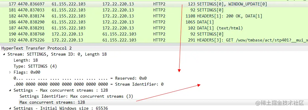 当天猫服务器返回这个setting帧的响应的时候,就告知了浏览器,我能支持的最大并发stream为128。