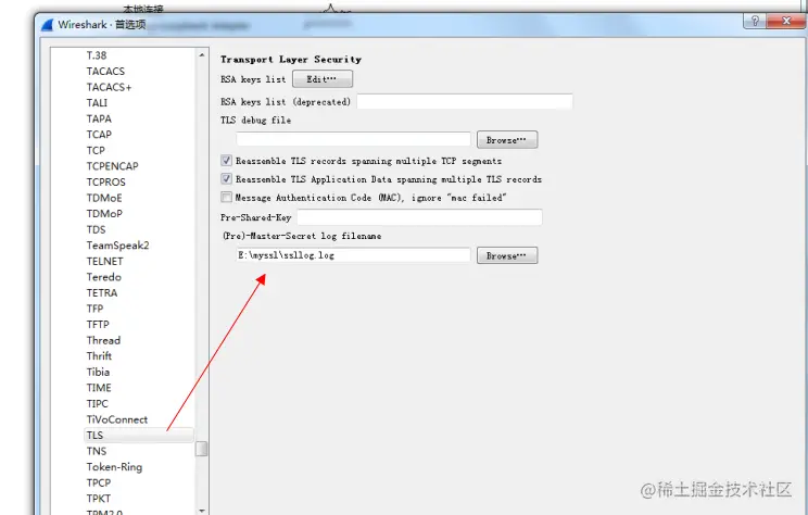 然后将我们的Wireshark中SSL相关的设置也进行配置。