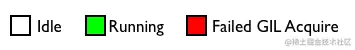 - 红色区域指示操作系统何时仅计划线程将其唤醒,并发现GIL不可用。