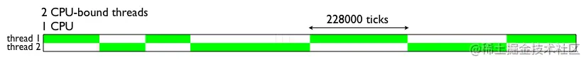 首先,这是在单个CPU系统上运行两个CPU绑定线程的行为。