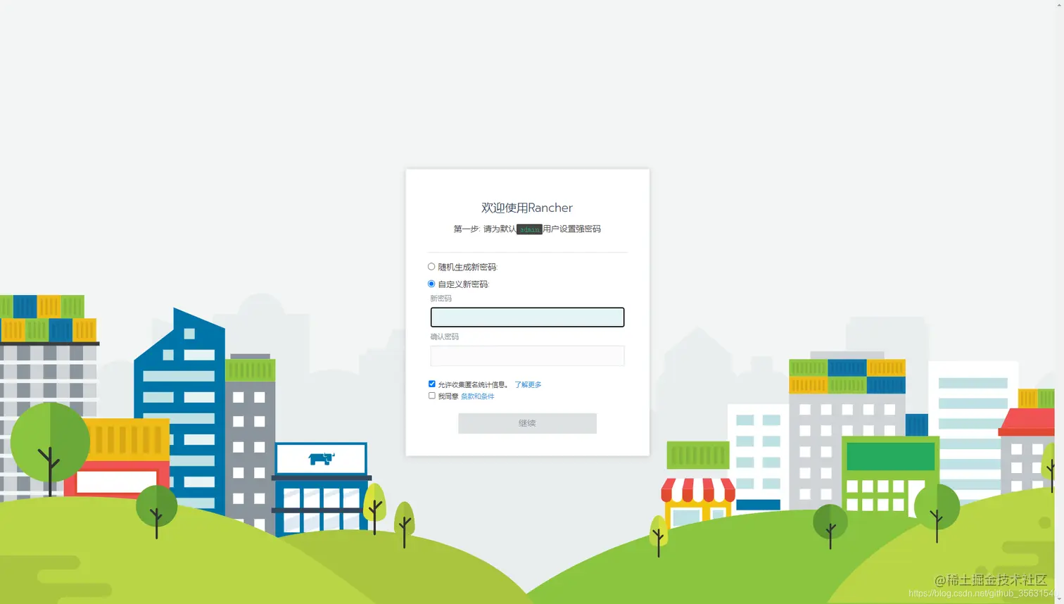 看到这个页面是正常的, 因为rancher镜像中的https证书是随便搞的, 所以不安全,点击高级,信任证书,接受风险并继续就可以了