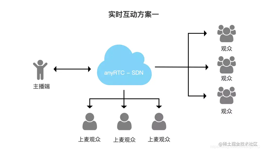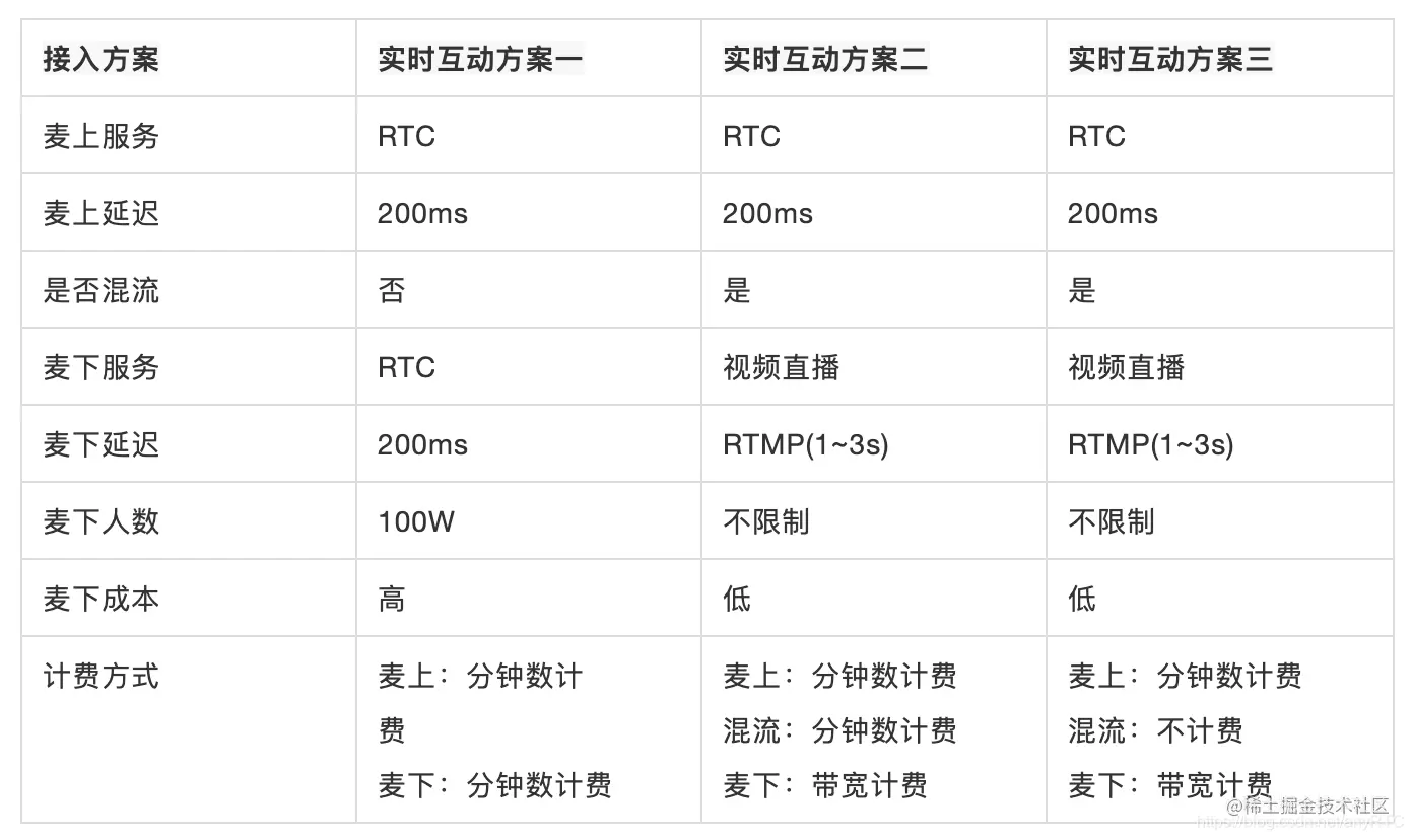 除了速度和质量,还有低成本-anyRTC语音聊天室方案提供3种方案,一种实时互动,另外二种低延时互动,低延迟互动可以大大降低音视频互动的成本。