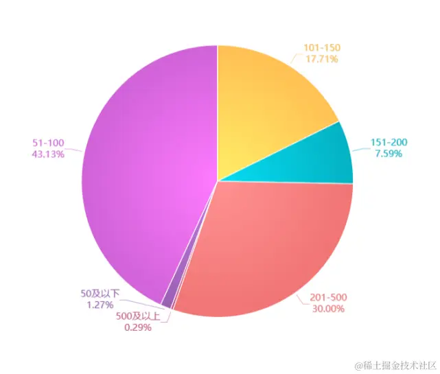 数据表里将价格区间分为“50以下”、“50-100”、“100-150”、“150-200”、“200-500”、“500以上”等,可以看出来占比最大的价格区间是“50-100”,这应该属于平民价格了;值得注意的是“200-500”的价格占比也高于“100-150”。