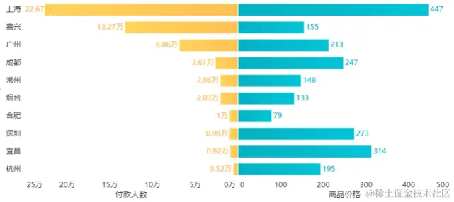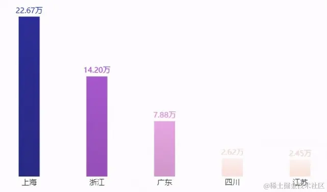 通过条形图就更明显了,上海的销量有20多万,几乎是浙江、广东、四川的总和。