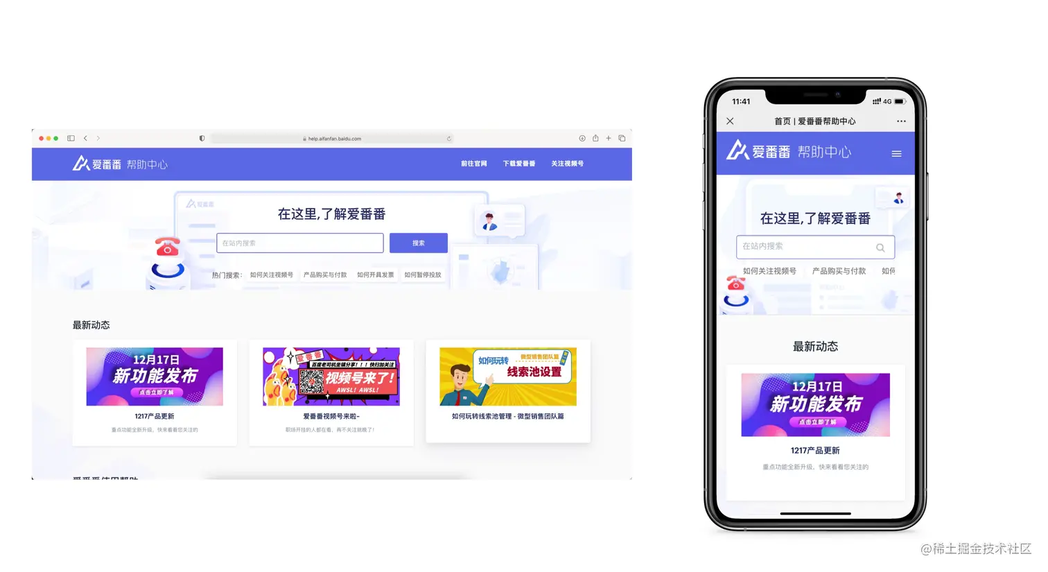 给到客户快速找到产品帮助文档的渠道,Baklib不仅仅局限于PC端展示,移动端同时也有良好的展示效果。