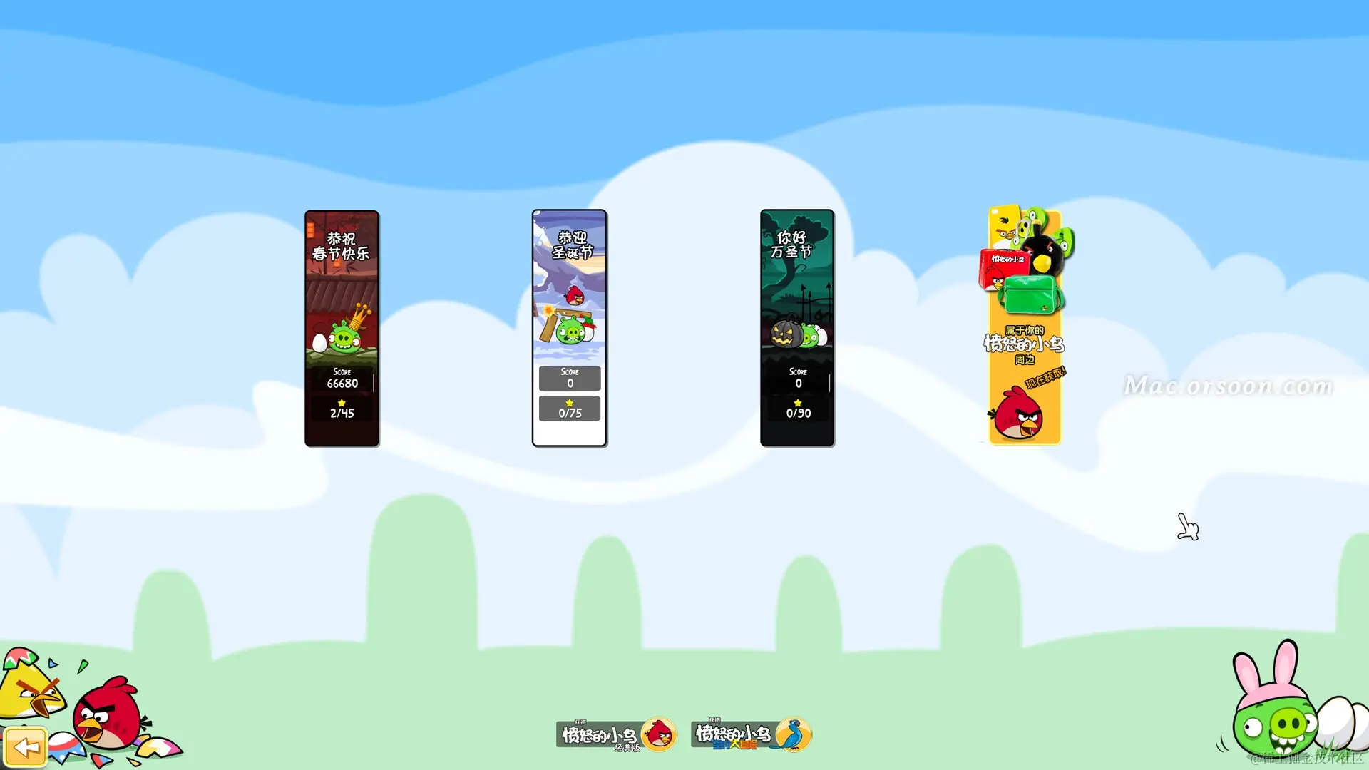 愤怒的小鸟:龙年版 for Mac又名愤怒的小鸟春节版,这是于2012年专为中国龙年所设计的一款带有精美中国新年元素的趣味闯关类休闲游戏,作为四季系列中节日主题的特别版,愤怒的小鸟龙年版包含了2011和2012两个主题,愤怒的小鸟:龙年版 Mac版游戏玩法和前几部一样,将弓上的小鸟扔出去,砸到对面的肥猪,不同的小鸟有不同的技能哦!