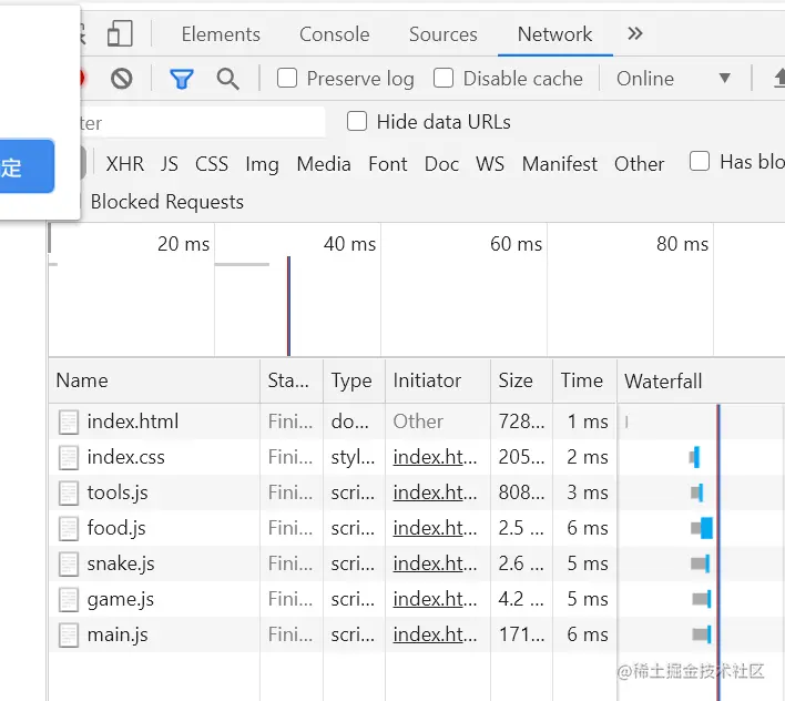 - 运行游戏后,在控制台network下可以看到HTTP向服务器请求的文件数