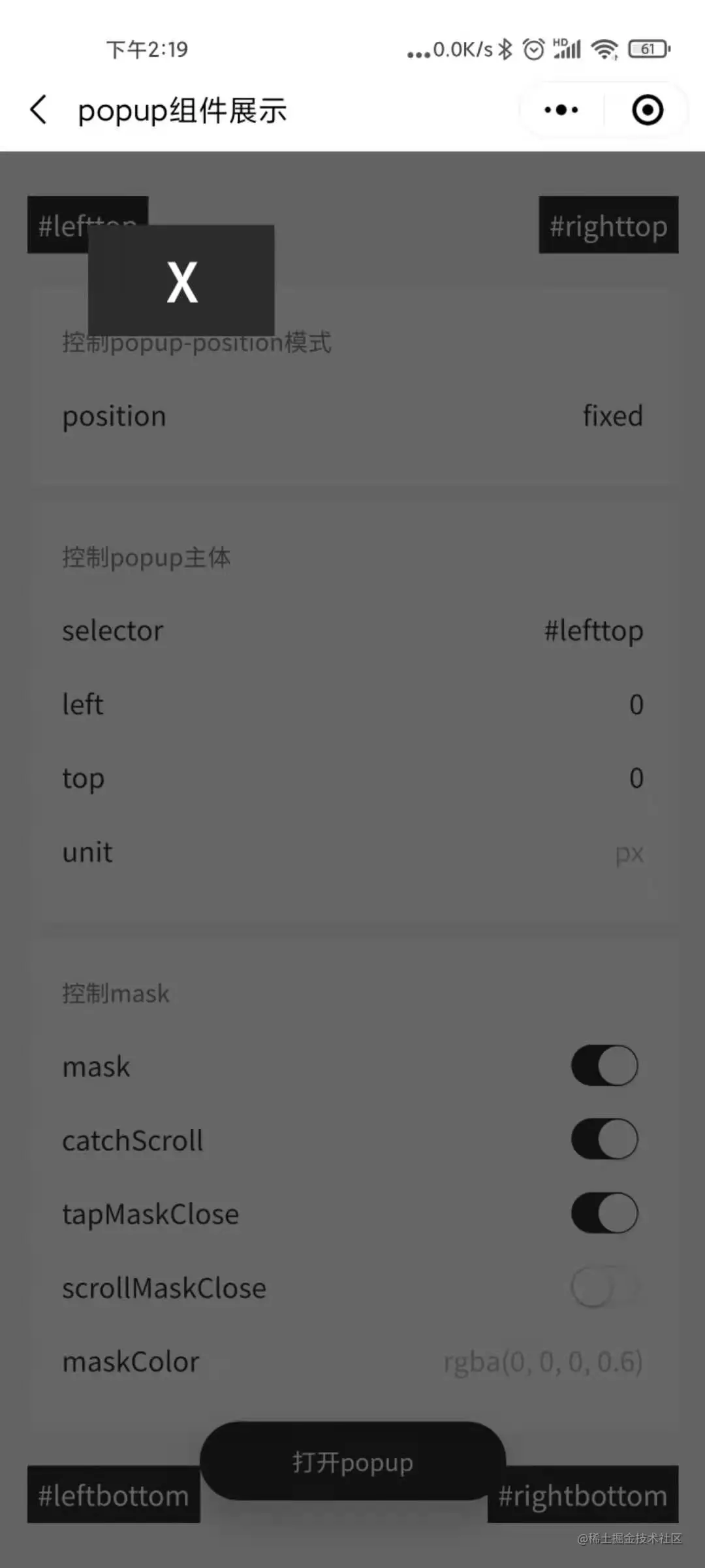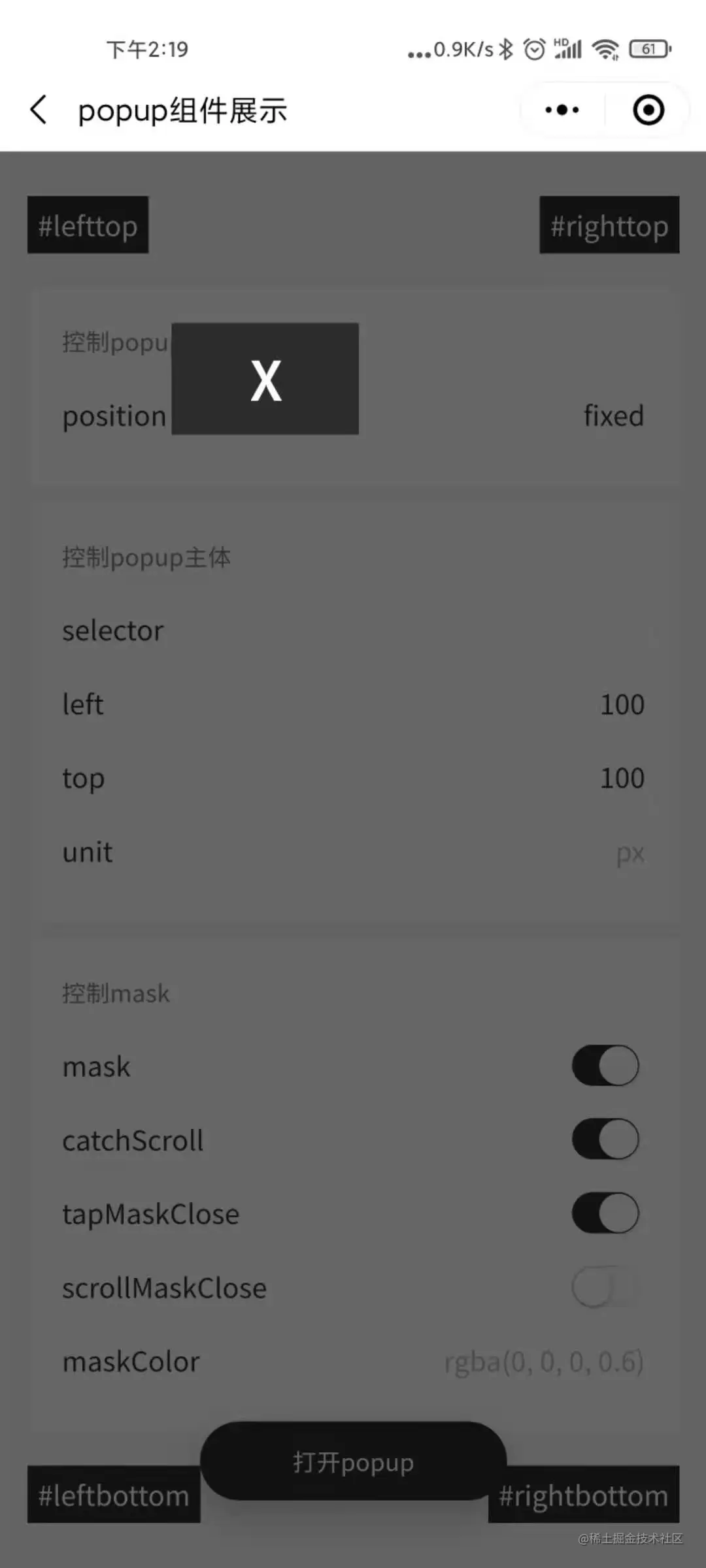 popup的通用逻辑:弹出位置,背景 mask,函数式控制显隐 - 并对 fixed 模式升级,不仅支持直接传入 left、top 控制