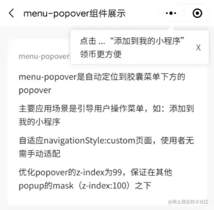 popover的基础上,针对小程序引导添加我的小程序的场景,自动将 popover 定位到小程序胶囊下方 - 组件自动识别页面