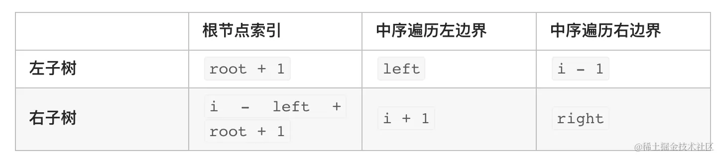 //右子树根节点索引:根节点索引 + 左子树长度 + 1