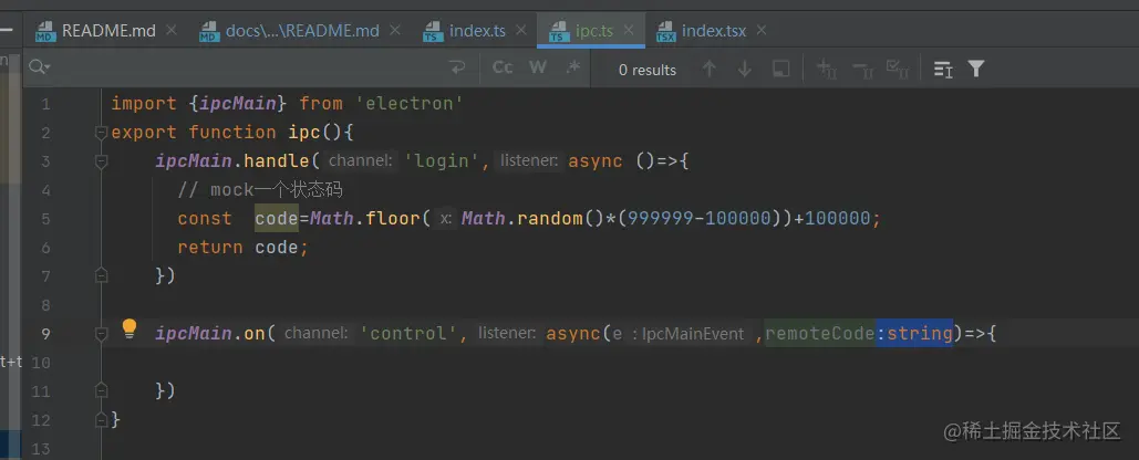 main-process/ipc.ts 这里ipcMain.on函数的第二个参数是一个回调函数,ts准确识别出来了类型,剩余参数则要自己指定类型