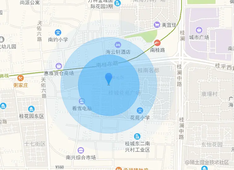 let circleMarker = (longitude, latitude) => new AMap.Circle({