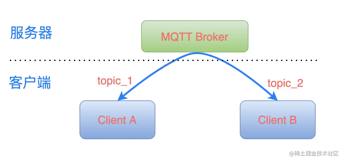 - ClientA 订阅主题 topic_1,ClientB 订阅主题 topic_2;
