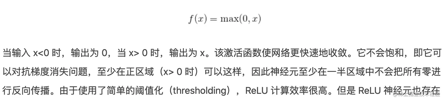 - 简单的阈值化->计算效率高,不会饱和因此不会梯度消失