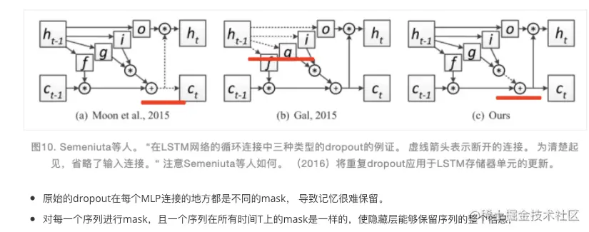 - 有几篇论文都是在RNN不同连接的地方尝试dropout