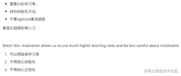 - 标准化是对每一层输出进行变化,使其输出分布不太过分 一般在深度学习中过拟合比较严重,大多是针对过拟合提出改进