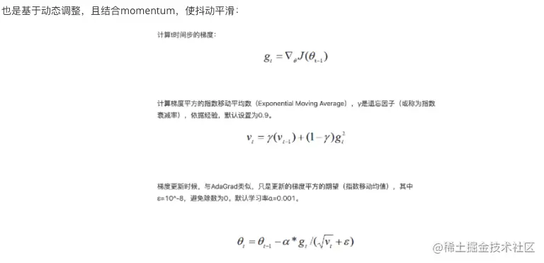 - 移动平均防止抖动,(结合历史梯度(方向)信息,收敛速度加快)