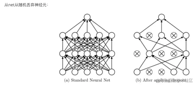 主要是为了解决过拟合问题,类似于正则化惩罚,随机丢弃神经元