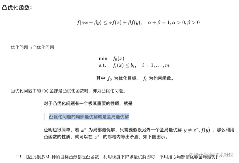 - 凸优化问题的局部最优解就是全局最优解