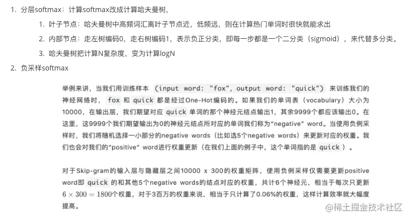 - 主要是针对softmax计算量比较大的情况,有个累加项,需要遍历所有单词计算score mp.weixin.qq.com/s/q8mVupjdH…