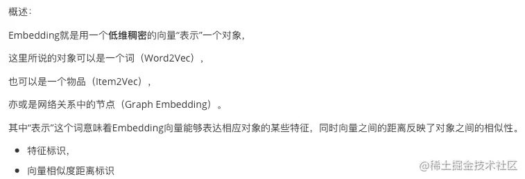 1. Embedding 是一个将离散变量转为连续向量表示的一个方式, 强调是离散。