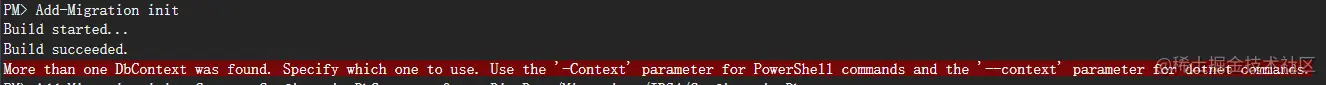 注: 如果程序中有多个上下文,如果不指定上下文,迁移会报错,因为程序不知要到迁移哪个。