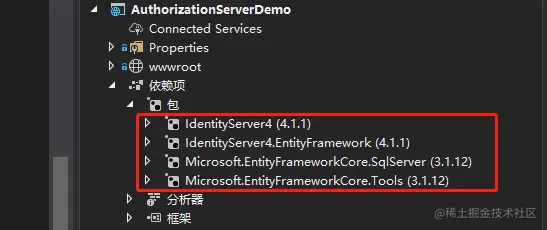 - IdentityServer4:这个包是IdentityServer4的核心包,项目中只要使用IdentityServer4,就必须引入此包;