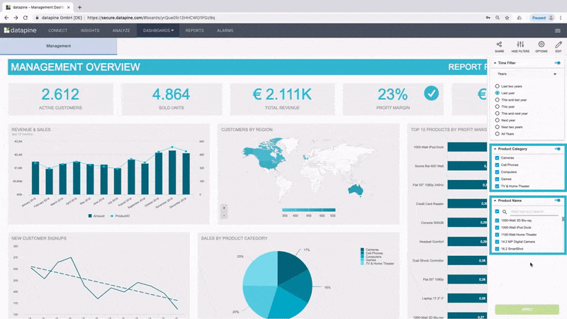 按产品类别表示的分层过滤器。图源:datapine