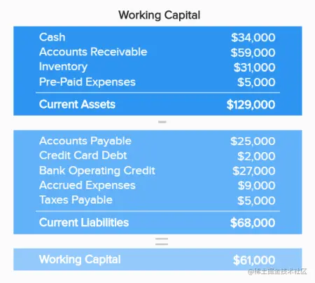 它不包括任何比率或比例,而仅包括代表你的流动负债,流动资产和总营运资金状态的数字;如果营运资金很高,你可能要考虑投资多余的现金,因为更高的价值并不一定意味着你的公司表现良好。
