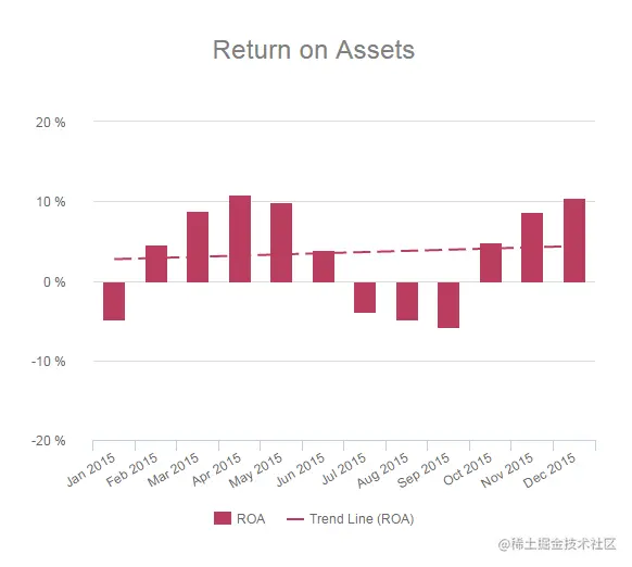 底线是——你的ROA越高就越好,尤其是当你将该指标与直接行业竞争对手进行比较时,此类图表对于你持续的财务进展至关重要。
