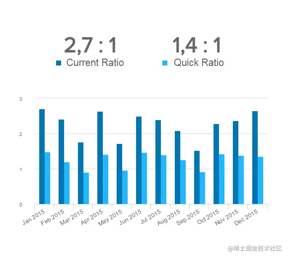 该财务图表示例与现金管理数据紧密相关,实际上是一种流动性比率,使你能够了解企业在短期内(通常在6或12个月内)如何为短期内支付最关键的债务做好准备期。